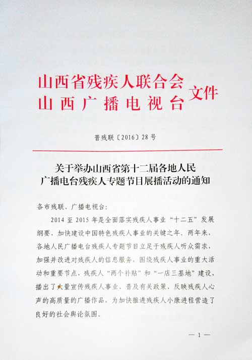 关于举办山西省第十二届各地人民广播电台残疾人专题节目展播活动的通知