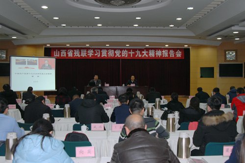 12月12日下午,省残联在省人大会议中心召开学习贯彻党的十九大精神报告会。邀请了省委党校党史党建教研部主任崔建周教授作了辅导报告,省残联党组书记、理事长李亚明主持报告会,省残联党组、理事会领导,机关全体干部和直属事业单位科级以上干部共80余人聆听了报告。