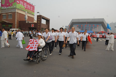 省残联领导张玉洁、郝保平、郭新志、温万一等率在并残联系统干部职工和残疾人代表昂首阔步行进在队伍的前面,充分展示了我省残疾人和残疾人工作者良好的精神风貌。