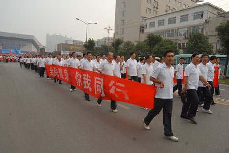 8点20分,随着发枪令响,在省领导的带领下,万人健步行各代表队从滨河体育中心出发,经滨河西路向省博物院行进。