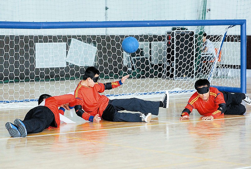 “因为身体的原因,我们能参加的体育活动非常有限,所以,我们对盲人门球的喜爱,超过了健全人对篮球和足球的喜爱。”运城队盲人门球运动员陈丰庆说。 盲人门球在国内发展的时间很短,而运城盲人门球队组建还不到一个月。尽管只有20多天的训练,陈丰庆却深深地爱上了这项运动。“盲人也能打球?”之前,陈丰庆自己也不敢相信。他今年33岁,是一名盲人按摩师,眼睛只有微弱的光感。由于身体素质较好,他被选入了运城市盲人门球队。 为了参加此次比赛,仅有的3名队员开始了“魔鬼训练”。因为没有专业场地,他们只能在一间大会议室的水泥地上训练。39℃的高温,没有空调,刚训练10分钟,队员们就已全身湿透。 他们训练防守时,需要展开整个身子横在球门前,让身躯都成为阻挡进球的障碍。下蹲、扑倒,再下蹲,再扑倒……一个动作每天要反复训练上千遍。膝盖、手肘被磕肿,胯部被水泥地磨出鲜血…… 每天集训8小时之后,所有人身上都青一块紫一块。即便这样,训练外的时间,陈丰庆还要自己对着墙练投球。“虽然我们看不见,但是我们要让其他人看看,盲人也能打出精彩的比赛。”他说。 在训练中,队员们不仅提高了自己的技术,也锻炼出了默契。队员们只要轻轻地敲一敲地面,就能知道彼此的位置,从而调整队形,封住防守的漏洞。 太原队是全省组建最早的盲人门球队,李嘉雄是有四年球龄的老队员。同时,他还是太原市盲童学校职高的一名学生。平时,他除了练球,还要学习按摩。由于眼部的局限,盲人大多数只能从事按摩行业,几乎所有盲人门球运动员都是按摩师。 李嘉雄最大的希望是跟着盲人门球队走出山西、走出全国、走向世界。“盲人门球运动让盲人走出家门,走向社会,同时,也让社会看到我们,更加关注盲人。”李嘉雄说。(山西晚报记者 王也)