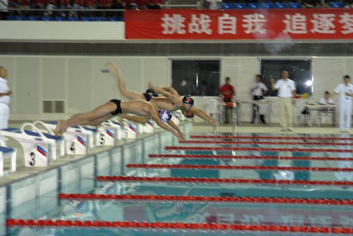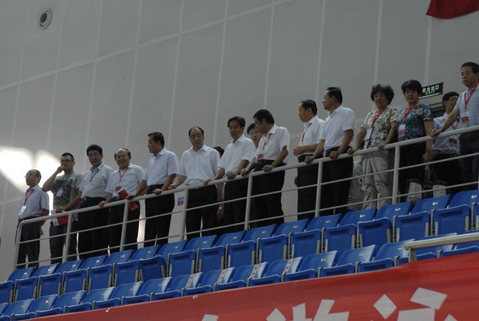 出席第十届省残运会的领导和嘉宾观看游泳比赛