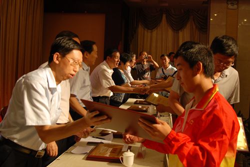 获得“体育道德风尚奖”的代表团代表上台领奖